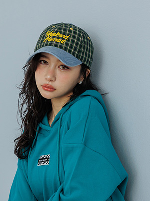 刺繡字母格紋拼接牛仔棒球帽