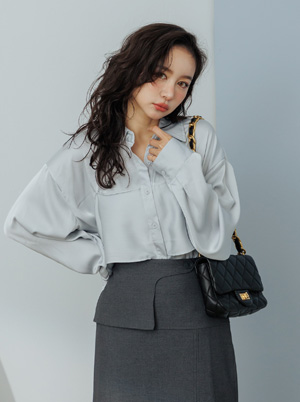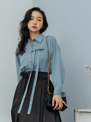 光澤絲滑料層次綁帶襯衫