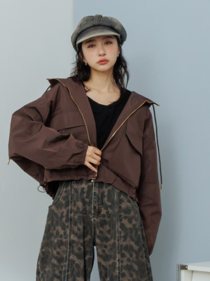 大口袋拉鍊連帽抽繩布勞森外套