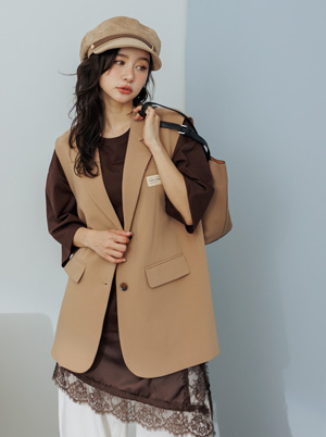 字母布標翻領雙扣西裝背心