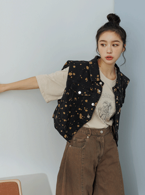 特殊潑漆壓扣牛仔短版背心