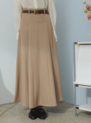 A字拼接剪裁皮帶長裙