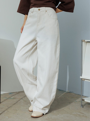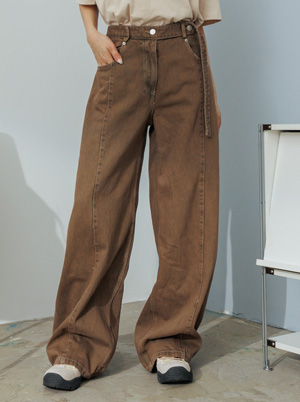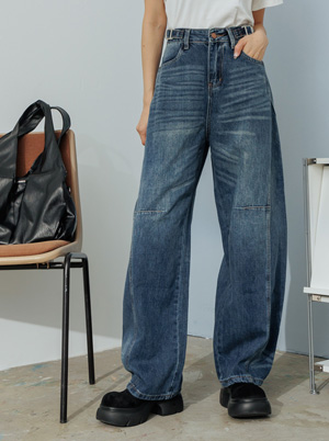 皮帶腰頭拼接刷色牛仔長褲