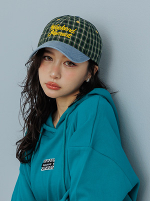 刺繡字母格紋拼接牛仔棒球帽