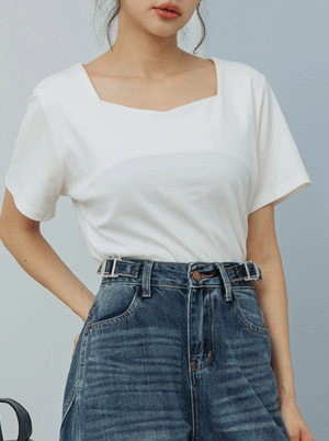 方領棉質短袖上衣